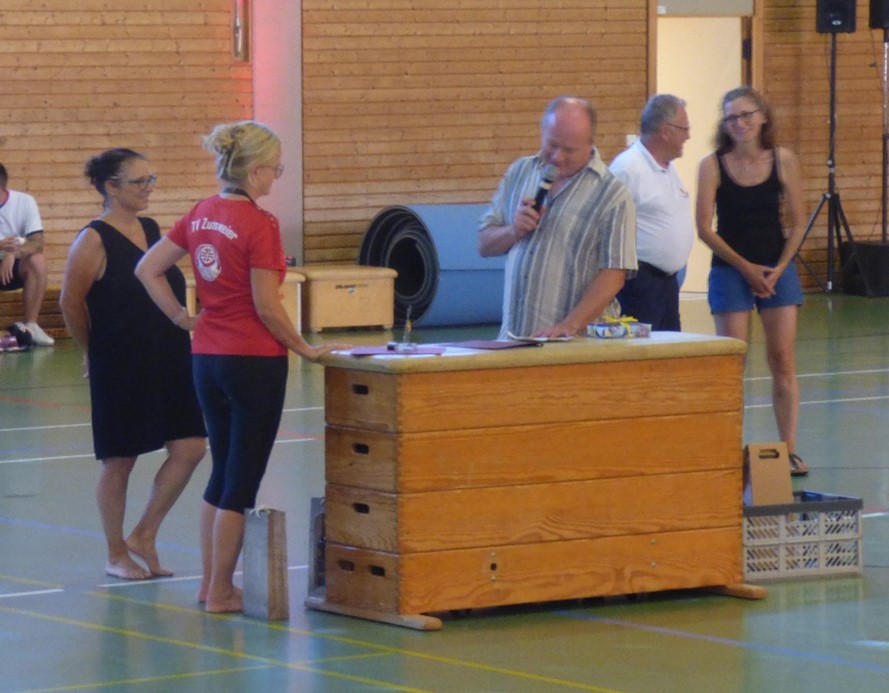 Eine ganz besondere Ehrung erhielt Susanne�Zink von ihrem Turnverein, sie wurde in den letzten Jahren für ihre herausragende Tätigkeit beim TVZ schon mit allen Ehrennadeln ausgezeichnet. Nun übernahm es der Vorstand sie mit einem persönlichen Geschenk für ihren unermüdlichen Einsatz zu überraschen. Susanne ist seit 43 Jahren als Übungsleiterin in der Abteilung Turnen tätig, dabei leitet sie heute zwei Frauengruppen im Gymnastik- und Fitnessbereich. Darüber hinaus führt sie seit vielen Jahren „Gymnastik Spezial“-Kurse durch. Seit 40 Jahren arbeitet Susanne aktiv im Turnrat mit, sie leitet die Abteilung Fit & Gesund, welche die Erwachsenengruppen des TVZ umfasst. Susanne ist immer bereit bei der Organisation der Vereinsfeste mitzuwirken. Sie ist ein alter Hase mit viel Erfahrung und Wissen, dennoch ist sie immer für neue Ideen zu haben.